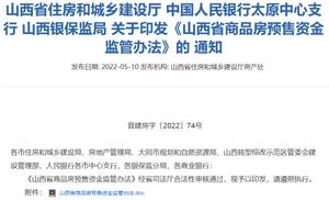 5月10日,山西省住房和城乡建设厅发布《山西省商品房预售资金监管办法》,明确施工进度达到地上主体工程封顶的,监管账户留存余额不得低于重点监管资金总额的40%等相关规定。