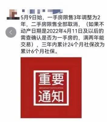 苏州再次松绑的截图刷屏朋友圈(以官方为准)。网传新政内容:5月9日始,一手房限售3年调整为2年,二手房限售全部取消!(如果不动产仓房日期是2022年4月11日及以后的需查确认是否为一手房的,满两年能交易)限购三年内累计24个月社保,改为累计6个月社保!
