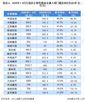 根据中房网不完全统计,按照已公布2020年销售目标39家房企,结合克而瑞研究中心监测的销售数据测算,已公布销售目标的房企前四月销售目标完成率均值为20.06%,相比一季度整体提升了7.65个百分点,但仍不及2019年同期的完成情况。