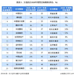 截止2020年4月初,已经有40家房企直接或者间接公布了2020年销售目标。尽管大多数企业2020年销售目标较2019年销售成绩有不同程度的增幅,但平均增幅较以往明显缩小。这40家企业2020年销售目标平均增速不足14%,创下近年来的新低。伴随着行业增速放缓,尤其是受新冠疫情影响的时间难以预测,房地产行业不确定性增加,房企纷纷选择谨慎表态。在40家企业中,有34家企业上调了销售目标,1家持平,5家下调。