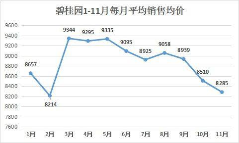 事实上,从下半年开始碧桂园每月销售价格便呈现往下的趋势。若进行统计,碧桂园1-6月的平均销售均价为8990元/平方米,而7-11月这一数据则降至8743.4元/平方米。