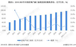 2021年1-11月,中国房地产施工面积为95.67亿平方米,同比增长6.3%。
