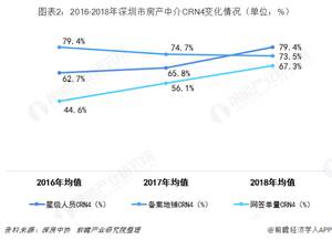 从深圳市房产中介的网签单量CRN4来看,2016-2018年,深圳市房地产网签单量CRN4逐渐提升,从2016年的44.6%提升至2018年的67.3%,Q房网、链家、中原、乐有家四家房产中介的优势明显。