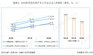 虽然新增中介人数减少,但整体从业人员结构却在不断优化。三星级以上从业人员占比也从2016年9.4%提升至20.9%;大专以上学历从业人员占比逐步提高,从2016年的15.9%提升至2018年的28.3%;4年及以上从业人员比例从2016年的20.1%提升至2018年的32.5%;36岁及以上从业人员占比从2016年的13.0%提升至2018年的19.9%。