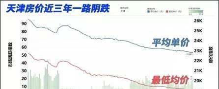 1、天津房价出现三年的连续阴跌,无论是单价还是均价,均回落了4千-5千;从市场活跃度指数来看,除了2018年市场活跃度指数偶尔超过30,其余年份基本位于0-20的区间,这直观的显示出天津二手房市场正面临着有价无市的尴尬。