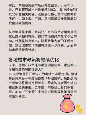 对此,中指研究院市场研究总监表示,今年以来,已有超百城出台政策超250次,其中超4成涉及公积金相关内容。近期部分核心城市政策亦有所优化,如上海、广州、深圳均增加多孩家庭公积金贷款额度等。