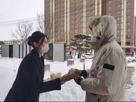 图:葫芦岛碧桂园枫璟澜庭物业工作人员为业主送姜茶(来源:企业供图)