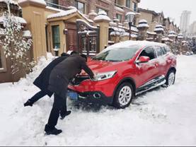 为保护业主车辆免遭暴雪“侵袭”,碧桂园服务各项目提供各种细节关怀服务,帮业主竖雨刷器、加盖遮雪布、用吹雪机清理积雪,协助业主推车,为熄火的车辆电打火。
