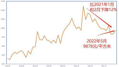 全国房价都在都处于下降。今年5月份,全国新建住宅平均销售价格9878元/平方米,与2021年1月和2月的11228元的顶峰相比,每平方米下降了1350元,降幅12%。