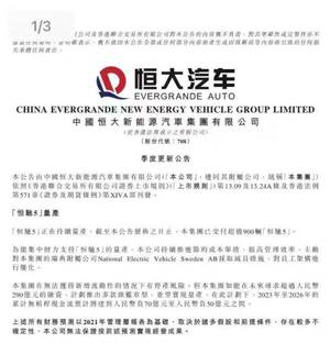 据恒大汽车数据,2022 年 7 月份该公司开始预售恒驰 5 ,截至今年 5 月底,恒驰 5 的交付数量仅为 1000 辆。