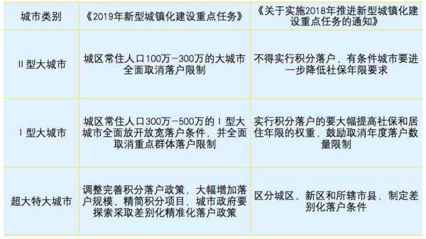 让我们先看一张表,对比一下之前的政策和2019年的新政策,有什么样的变化。从表中,我们发现,2018年,一级大城市还在实行积分落户,而二级大城市已经取消了积分落户,到2019年的新政策,一级和二级大城市已经全面取消落户限制,而超大特大城市的落户政策也越来越完善和精简。