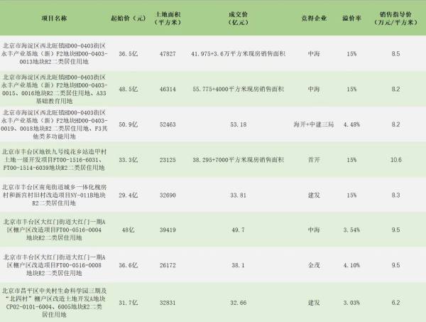 此外,从具体地块来看,丰台区造甲村地块是此次土拍中唯一销售指导价超过10万元/平方米的地块,达到10.6万元/平方米,最终首开以上限价38.295亿元、竞配7000平方米的现房销售面积拿下该地块。