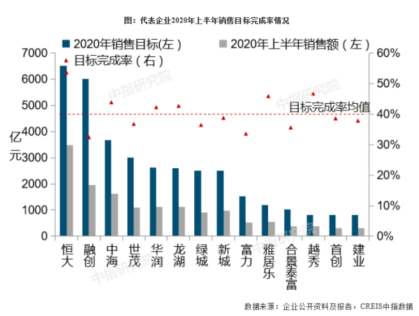 代表房企2020年上半年销售目标平均完成率为四成。2020年受新冠疫情影响,房企项目销售承压,截至上半年,重点监测房企年度平均销售目标完成率为40%,低于往年水平。预计下半年,随着疫情对房地产市场预期的负向影响逐渐减弱,企业供货力度将会持续提升,“促销售、抢回款”仍将是重中之重。