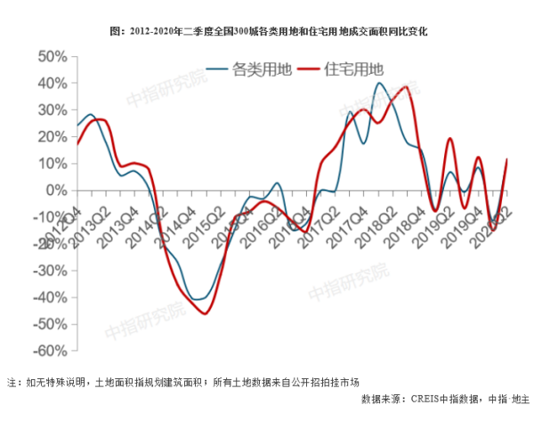 全国300城住宅用地供应规模小幅增长,二季度推地力度明显加大。2020年上半年,全国300城各类用地共推出10.9亿平方米,同比增长1.5%。其中,住宅用地推出5.4亿平方米,同比增长1.0%。上半年住宅用地成交规模有所下降。2020年上半年,全国300城各类用地共成交8.7亿平方米,同比下降6.0%,其中,住宅用地成交4.3亿平方米,同比下降5.4%。具体来看,一季度,住宅用地共成交1.4亿平方米,同比下降22.8%;二季度,土地供应规模有所增加,叠加2月以来各地政府出台供给端扶持政策,企业拿地信心有所提振,住宅用地共成交2.9亿平方米,同比止降转增至6.4%。