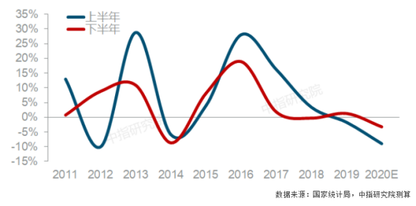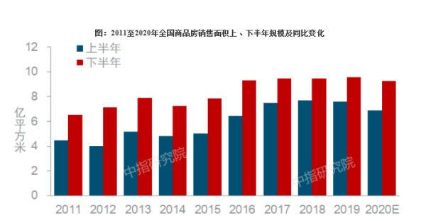 根据中指研究院今天发布的《2020上半年中国房地产市场总结&下半年趋势展》报告来看,2020年中国房地产上半年和下半年的市场情况如下: