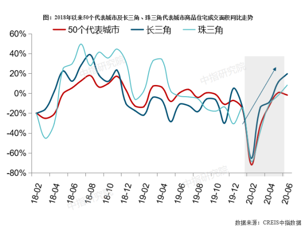 2020年伊始,在新冠疫情的冲击下,房地产市场量价短期均有所回落,特别是成交量,新房、二手房同比降幅均达近年来最大。3月以来,随着中央和地方政策的逐渐显效,如多次降息、供给两端的政策扶持、重大规划落地等,购房者置业情绪好转,前期积压的市场需求积极入市,与此同时,企业紧抓销售窗口期,加大推盘力度,创新营销模式,亦带动置业情绪提升,新房和二手房价格环比均小幅上涨,5-6月新房成交规模已接近过去三年同期的平均水平,但不同区域、不同城市甚至不同项目之间,市场表现更加分化。短期看,常态化的疫情防控以及经济发展的较大压力,给房地产市场带来较多不确定性因素,面对当前的市场形势,企业的推盘积极性不减,下半年的推盘节奏或将前置,叠加前期积压的需求尚未完全释放,市场将继续恢复。