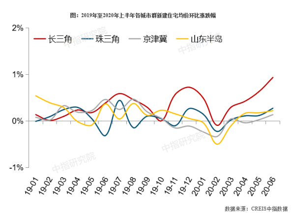 分梯队来看,疫情后,一线城市市场恢复较快,上半年累计涨幅居各梯队首位;二线城市市场逐步恢复,部分热点城市恢复较快,房价止跌回稳;三四线代表城市今年上半年累计涨幅收窄,部分城市受多重因素影响,房地产市场恢复相对缓慢,后期或面临调整压力。分城市群来看,长三角区域楼市复苏明显,上半年区域房价累计上涨2.72%,较去年同期扩大1.66个百分点;珠三角累计涨幅处于近五年同期低位;京津冀和山东半岛累计表现均为近五年首跌,市场恢复力度相对较弱。