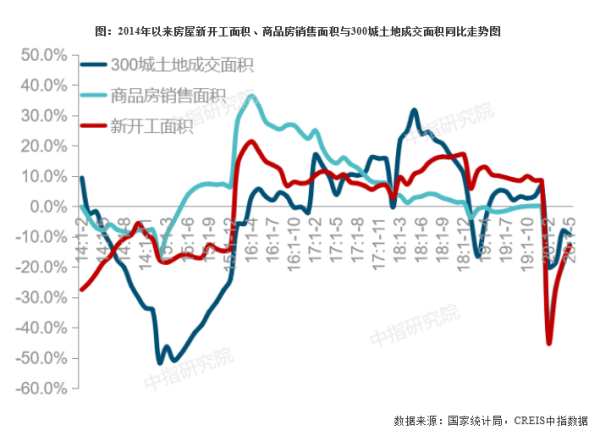 房企新开工积极性与市场销售热度息息相关,下半年全国房地产市场规模虽存调整压力,但短期疫情期间压制需求、信贷环境改善带动的投资保值需求、疫情推动的改善需求等仍有释放空间,预计下半年房企将继续积极推货,紧抓销售窗口期,实施高周转策略,开工将保持一定积极性;加之从300城土地成交面积来看,土地储备相对充足且土地供应有放量趋势,新开工增长具备较好基础。但另一方面,疫情发展的不确定性及市场库存的持续累积也将制约房企开工积极性的明显提升,预计2020下半年新开工规模稳中出现小幅增长的可能性较大,但全年仍将保持调整状态。