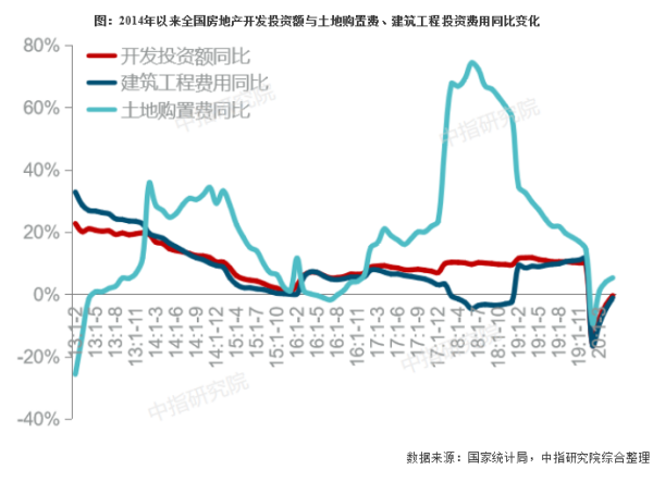 下半年土地购置费仍将保持一定增速支撑开发投资额继续增长,但整体拉动力将有所减弱。结合2019年土地成交价款持续调整、下半年降幅虽有收窄但仍未回正的特征,及现阶段房企受益于信贷环境改善积极拿地的行为来看,2020年下半年土地购置费增速在现有水平上保持稳中小幅波动的概率较大,进而将支撑开发投资额继续增长,但鉴于其增速与2019年相比仍将有一定差距,对开发投资额的整体拉动力也将减弱。