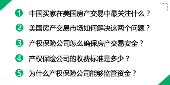 在购买美国房产过程中,产权保险公司从交易前的产权调查、提供产权保险、资金监管到过户登记已经全流程参与交易,逐步帮助买家规避风险。
