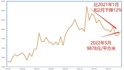 全国房价都在都处于下降。今年5月份,全国新建住宅平均销售价格9878元/平方米,与2021年1月和2月的11228元的顶峰相比,每平方米下降了1350元,降幅12%。