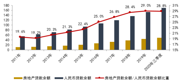 近年来,金融管理部门围绕“稳地价、稳房价、稳预期”目标加强房地产金融管理,同时积极探索创新宏观审慎工具,从供给和需求两侧入手,建立了首付比动态调整机制、试点了房企融资新规“三道红线”等,房地产金融管理长效机制进一步完善,截至2020年三季度末,房地产贷款余额48.83万亿元,同比增长12.8%,比上季末低0.3个百分点,连续26个月回落。在此背景下,进一步对银行的房地产贷款余额划定“红线”,有利于继续推动房地产市场平稳健康发展。