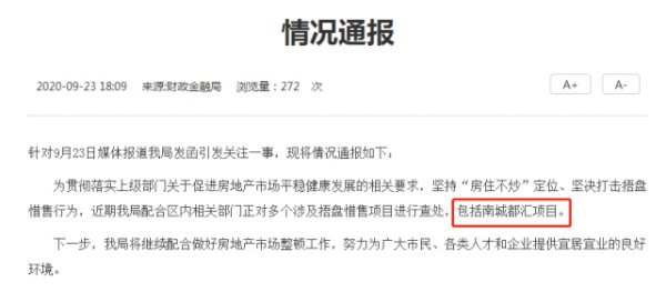 不过,根据上述四川当地媒体发布的报道显示,当天晚间时分,上述相关部门发布“情况通报”,对因下发函件引发市场关注一事作出正面回应:近期正在和多个部门一起,对“南城都汇”项目等多个有捂盘惜售行为的项目进行查处!