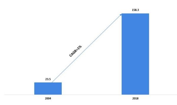截至2018年末,全国有房地产中介服务从业人员158.3万人,2004-2018年的复合年增长率达14.60%。