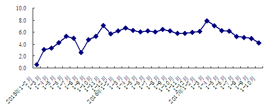 10月末,全市商品房施工面积11839.2万平方米,同比下降6.9%;其中,住宅施工面积5106.3万平方米,下降11.9%。商品房销售面积607.3万平方米,下降51.4%;其中,住宅销售面积402.8万平方米,下降44.4%。