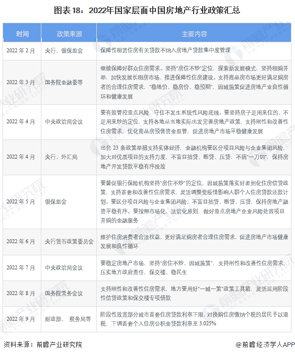 2022年,受宏观经济下行、新一轮新冠肺炎疫情反弹以及前期调控政策对市场传导作用的滞后显现等因素影响,国内房地产市场景气度继续下行。在市场景气度加速下行背景下,为防范行业出现系统性风险、保持房地产市场平稳健康发展,2022年以来中央多次释放维稳信号,将“保交楼”作为下半年工作重点之一,具体措施包括设立“地产纾困基金”,通过资产处置、资源整合和重组等方式,参与问题楼盘盘活及困难房企救助等纾困工作等,但“房住不炒”仍为政策主基调。