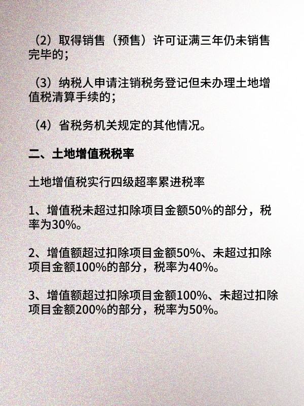 3、增值额超过扣除项目金额100%、未超过扣除项目金额200%的部分,税率为50%。