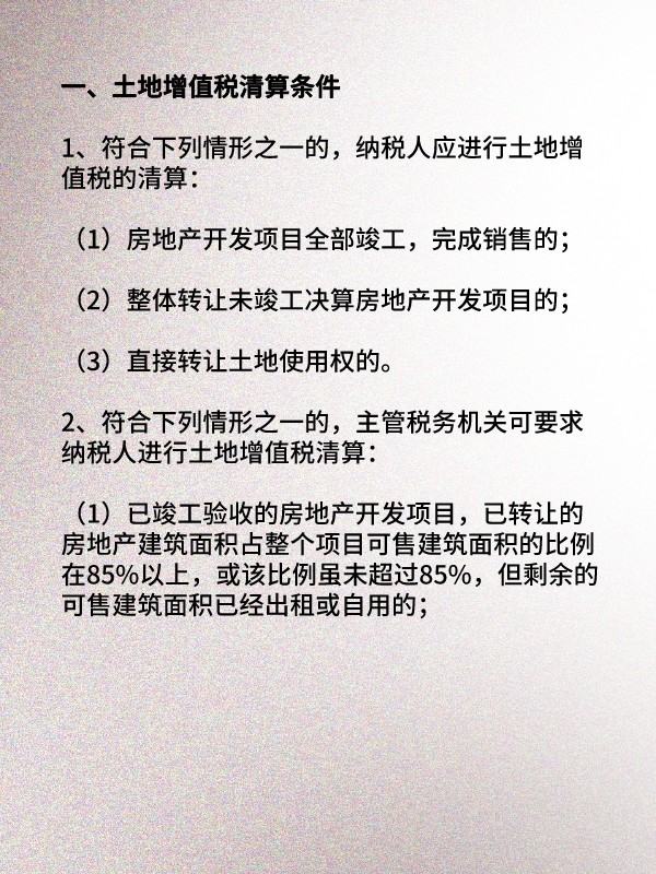2、符合下列情形之一的,主管税务机关可要求纳税人进行土地增值税清算: