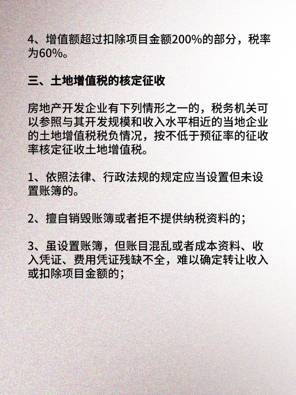 4、增值额超过扣除项目金额200%的部分,税率为60%。