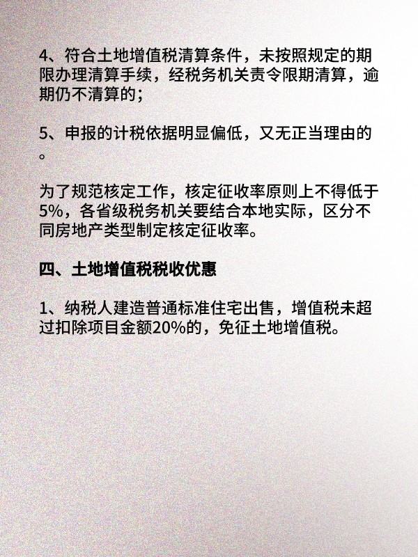 1、纳税人建造普通标准住宅出售,增值税未超过扣除项目金额20%的,免征土地增值税。