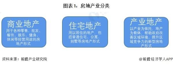房地产业是指以土地和建筑物为经营对象,从事房地产开发、建设、经营、管理以及维修、装饰和服务的集多种经济活动为一体的综合性产业,是具有先导性、基础性、带动性和风险性的产业。根据用途的不同,主要分为住宅房地产、商业房地产及产业房地产。住宅房地产是指用以居住的地产,包括普通住宅、公寓、别墅等房地产形式;商业地产通常指用于各种零售、批发、餐饮、娱乐、健身、休闲等经营用途的房地产形式;产业房地产是指以产业为依托,地产为载体,实现土地的整体开发与运营,打造产、学、研产业集群,帮助政府改善区域环境、提升区域竞争力的新型房地产形式。