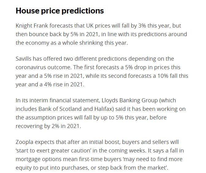 各房产专业机构以及网站对于英国疫情后的房价预测