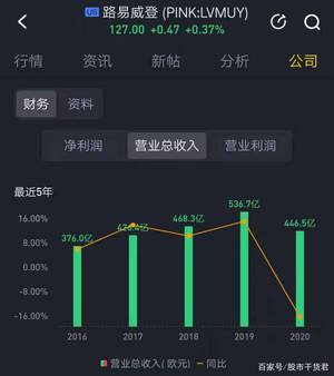 LVMH公司各年份营收情况