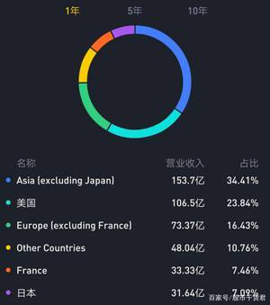 LVMH在各国的营收数值、比例