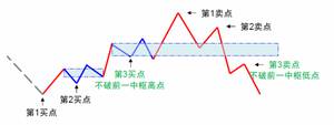 2、把走势全部同级别分解,关注新的走势之形成,以前一走势段为中间点与再前一走 势段比大小,大者,留之,小者,去之。