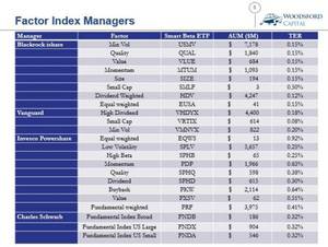 Invesco Powershare和Charles Schwab也提供不少因子指数基金。缺点是他们的费率都比较高,一般介于0.25%-0.6%之间(如上图所示)。Arnott的Fundamental Index (基本面指数)指数基金由Charles Schwab管理,费率为每年0.32%,也就是说该指数需要每年至少战胜标准普尔0.28%左右(先锋的标准普尔500指数基金费率为0.05%)才可能让投资者获得好处。