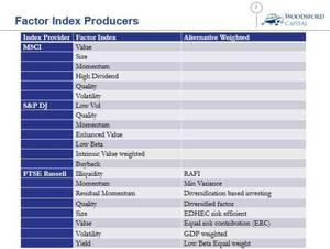 FTSE Russell由富时和罗素公司合并组成。该公司旗下的因子指数种类也很繁多,而且覆盖了很多美国以外的其他国家市场。同时上面提到的Arnott提出的Fundamental Index(基本面指数)也属于该公司旗下。
