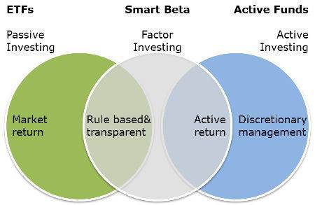 上面这张图比较形象的解释了聪明贝塔。在金融投资中,有两个基本概念叫做阿尔法和贝塔(对这两个概念不熟悉的朋友可以翻阅我这篇专门解释阿尔法和贝塔的文章:新手如何选择基金? - 知乎)。在上图中,左边那个绿色的圆圈代表贝塔(即市场回报),而右边那个蓝色的圆圈代表阿尔法(即超额回报)。