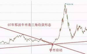 05年那波牛市很多人也愿意称为07年,一个是按照最低点算得。一个是按照牛市大涨的启动点算得,实质是一样的。通过上图我们可以发现一个规律,都是上证指数三角收敛的顶点是牛市启动位置。所以通过这个小的技术分析,等到下波牛市不管是2020年还是2023年,只要指数走出上面的图形的话,我们就把握股市牛市得启动点。但是现在谈牛市为时过早。感觉写的好的点个赞呀,加关注获取更多股市技术分析,如果大家有对股市何时启动有其他想法的可以再评论区评论。