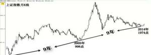 目前大家都比较关心的是下一波牛市会在什么时候,因为只有牛市买股票收益率才会更大,赚钱效应才会比较高,而且买入一只股票后就可以拿着等待它的上涨。下面我们就来分析分析牛市大致会在什么时候启动。1.按照牛市的周期规律我们最近两次的牛市实在05年和14年,从牛市的起点时间开始算,往前还有96年,所以按照这个周期规律的话,一波牛市的周期规律9年左右,按照这推算下波大约在2023年,下面看幅图。