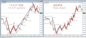 “1-2-3”反转形态是指该图表形态由三个点组成,而洛氏霍克形态(也就是趋势整理形态)由两个点组成,具体情况如图1所示。