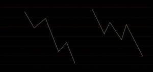 而左边的图没有标准中枢,是不是就是你说的那种下跌走势呢?这种图形一般把它称为类中枢的趋势下跌。它虽然没有标准中枢,但很常见。它的级别其实和右边接近,大多数情况下可以划等号。