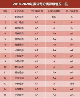 以下是2018-2020部分证券公司分类评级情况,仅供参考~