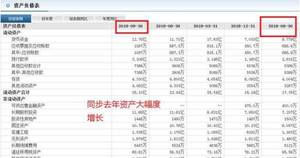 通过上图我们发现该公司的净利润出现了明显的下降,然后通过资产负债表中资产发现,今年同期还不如去年,参考下图: