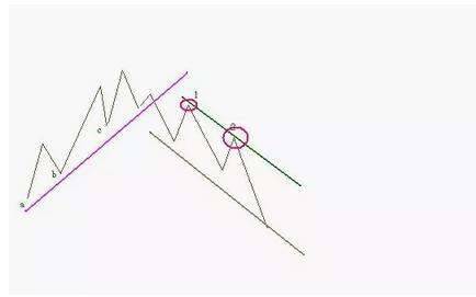 个股跌破趋势支撑线后,一般会有技术反弹,但是,第一次反弹无法收复前期上升趋势线,即,图二中的粉红色线,则不要幻想是挖坑洗盘了,这个时候,股票还会进行新一轮下跌,图二中的1-2位置都是高抛点。