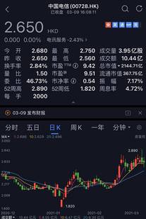 截至最新数据,中国电信在港股市值为2144亿,今年以来已经大涨超22%。